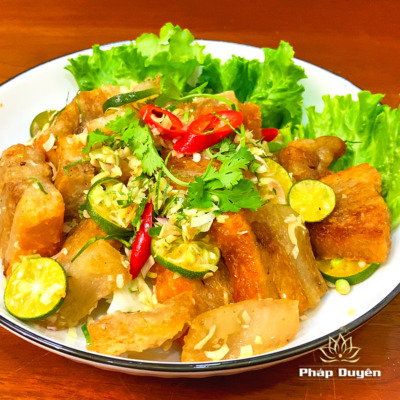 Mâm Chay Thịnh Vượng (nguyên liệu) – Nấm Hàu, Nem Hải Sản, Chả Quế, Canh Rong Biển, Xiên Móc Mật