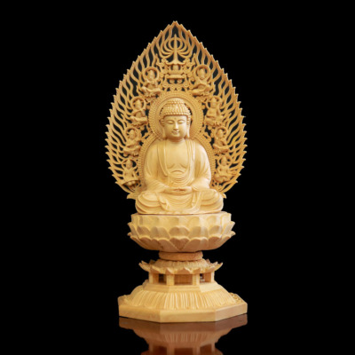 Tượng Phật Bổn Sư Thích Ca Bằng Gỗ Bách, Cao 28cm (Cả Lá Đề)