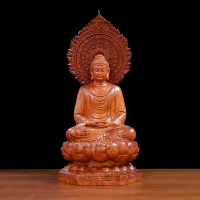 Tượng Phật Thích Ca Gỗ Bằng Gỗ Hương Nguyên Khối Có Lá Đề, Cao 50cm (Tổng Lá Đề 68cm)