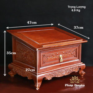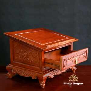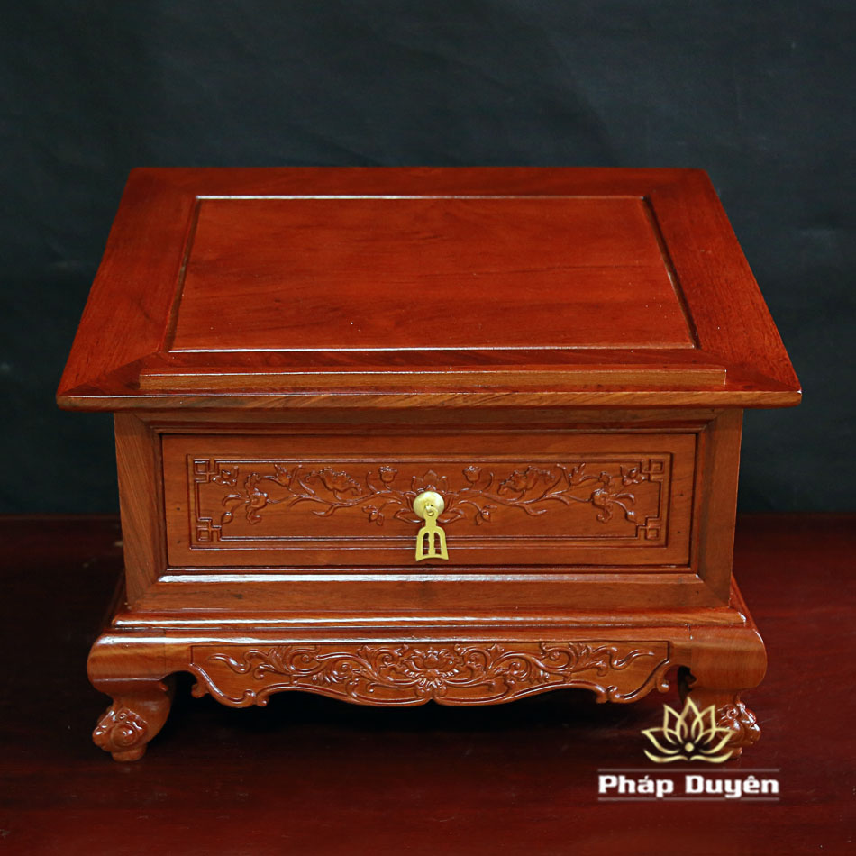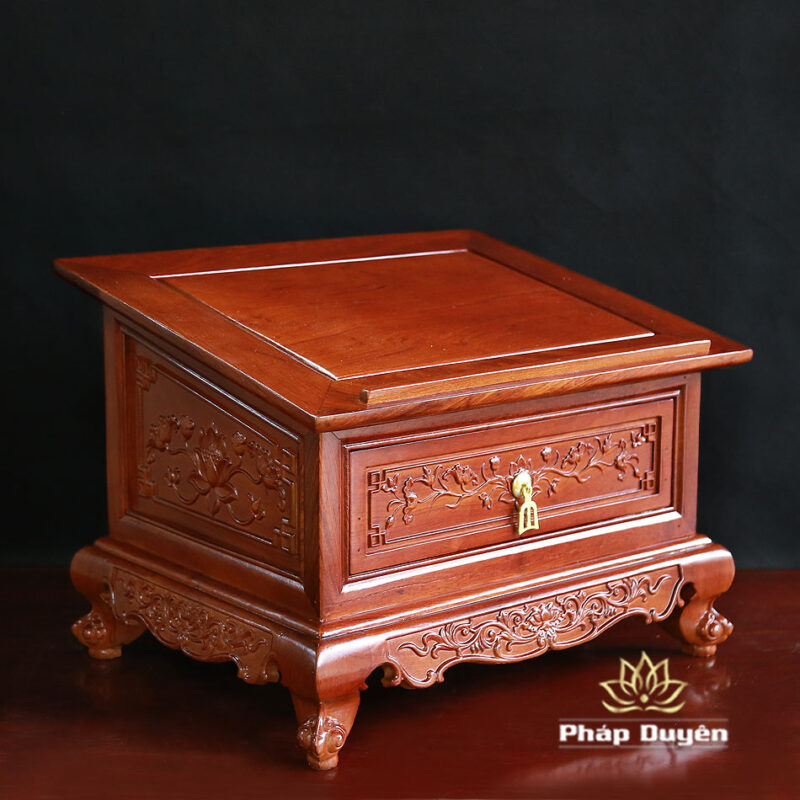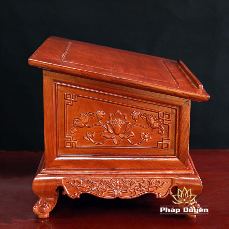 Bàn Đọc Kinh Bằng Gỗ Hương Màu Vàng Trạm Khắc Hoa Sen, Kích Thước 47x37x35cm
