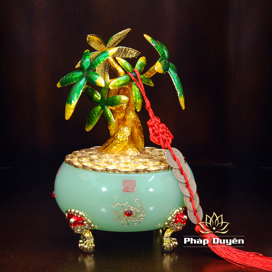 Bát Tụ Bảo Và Cây Kim Tiền, Bằng Ngọc Tráng Men, Cao 15.8cm