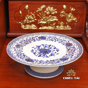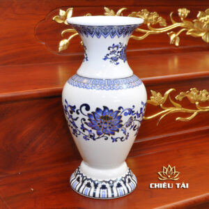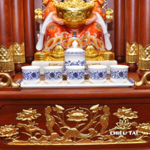 Bộ Bàn Thờ Thần Tài Thổ Địa Ba Gian Sứ Trắng Sen Xanh “Thái Hòa Hưng Vượng”, KT 153*127*189cm