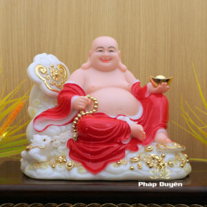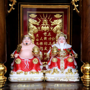 ✅ Bộ tượng Ngài Di Lặc và Thần Tài – Thổ Địa áo đỏ chất liệu bột đá.