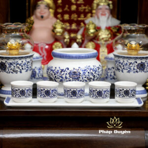 ✅ Bộ đồ thờ Sứ Đức Hoá hoạ tiết Sen Xanh.