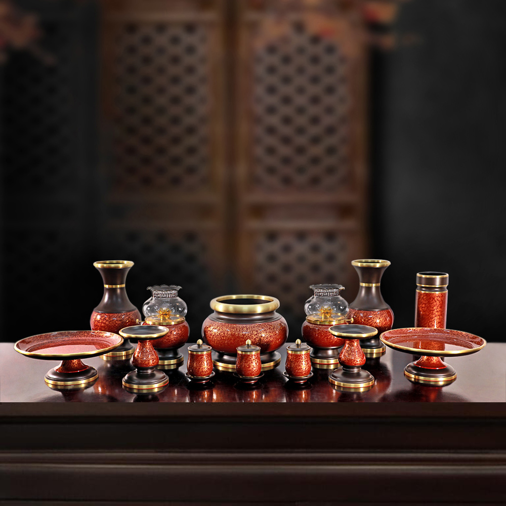 Bộ Đồ Thờ Bằng Đồng Vân Đá Nâu Đỏ