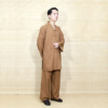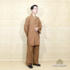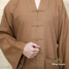Bộ Quần Áo Cư Sĩ Nam Dài Tay, Vải Linen Màu Nâu Nút Nhựa, Size S, M, L, XL