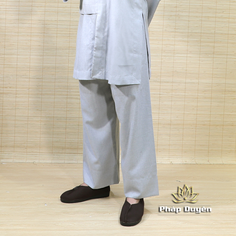 Bộ Pháp Phục Vạt Hò Phật Tử Nam Đi Lễ Chùa Vải Linen, Màu Xám, Nhiều Size