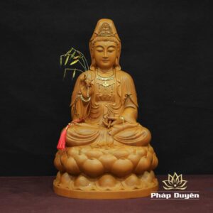 Tượng Bồ Tát Quan Âm Ngồi, Đế Sen Ba Tầng, Chất Liệu Gỗ Long Não, Cao 30cm