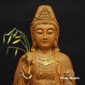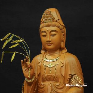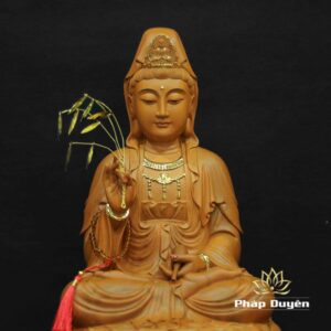 Tượng Chuẩn Đề Ngồi Bằng Gỗ Hương Chương Viền Vàng, Cao 30cm – 40cm