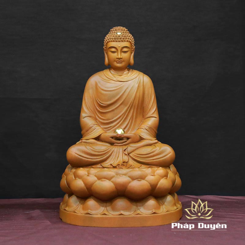 Tượng Thích Ca Mâu Ni Ngồi Đài Sen, Gỗ Hương Chương (Long Não), Cao 66cm