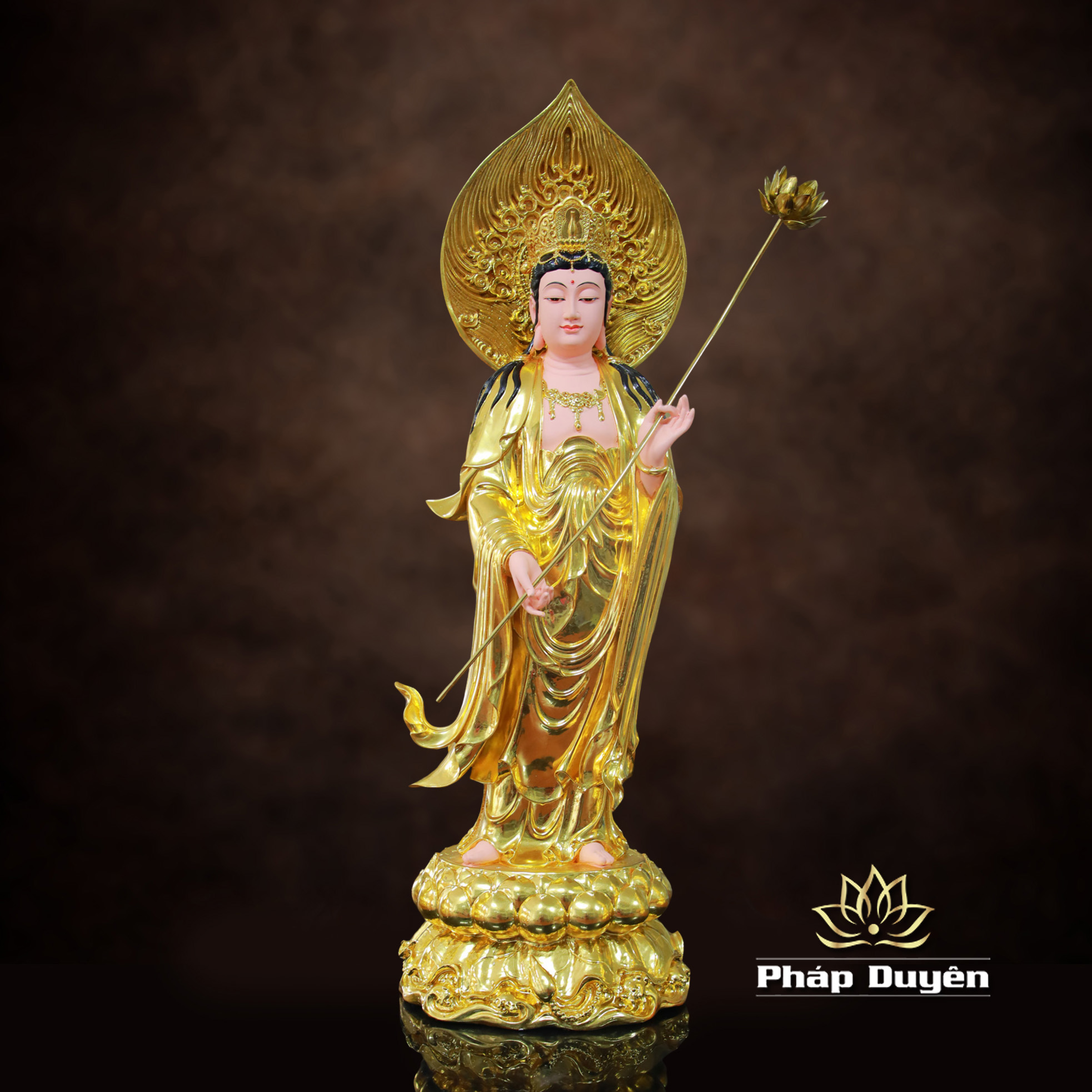 Đầu tiên là bạn phải chắc chắn bạn đang tìm tượng Phật, Bồ Tát mà bạn vô cùng ngưỡng mộ và mong được noi gương theo đức hạnh của Ngài. Đây làBộ Tây Phương Tam Thánh Đứng, Chất Liệu Composit Dát Vàng, Cao 90cm (Tổng Lá Đề Cao 112cm), trực thuộcTượng Tây Phương Tam Thánh.