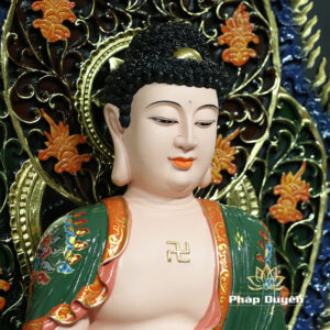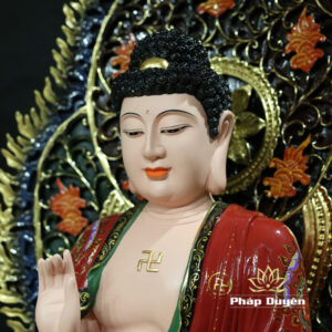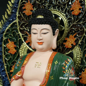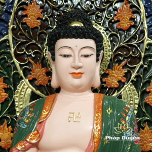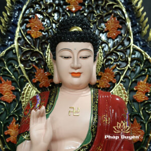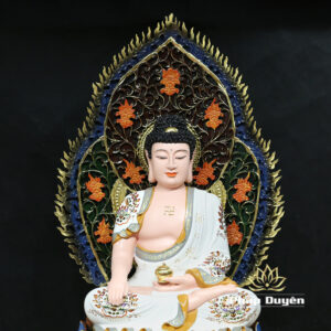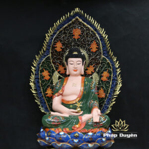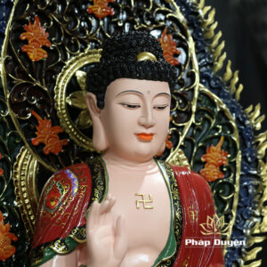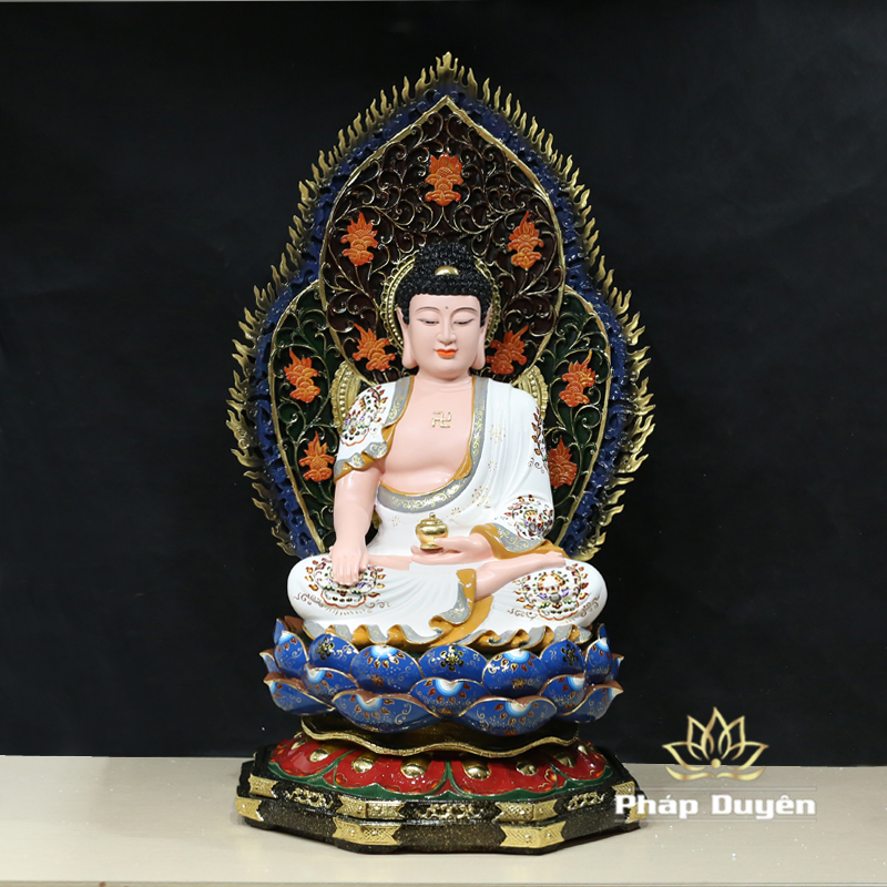 Trước hết, dựa vào pháp môn tu học hoặc sự kính ngưỡng của bạn mà lựa chọn vị Phật, vị Bồ Tát để về thờ phụng. Tượng này làBộ Tượng Ngũ Phương Như Lai (Ngũ Trí Như Lai) Ngồi Có Lá Đề, Composit Sơn Thường, Cao 66cm, một trong những sản phẩm thuộcTượng Ngũ Phương Phật.