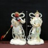 Bộ Tượng Quan Công - Vi Đà Hộ Pháp Đứng, Bột Đá Trắng Xanh Nhạt Viền Vàng, Nhiều Kích Thước