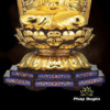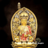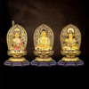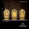 Bộ Tượng Ta Bà Tam Thánh Ngồi Đài Sen, Đế Bát Giác, Bằng Đồng Dát Vàng, Kích Thước 36x36x52cm (Tổng Lá Đề 60cm)