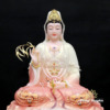 Bộ Tượng Ta Bà Tam Thánh Ngồi Đài Sen Sơn Phú Quý, Bằng Bột Đá Trắng, Nhiều Kích Thước