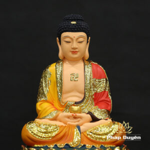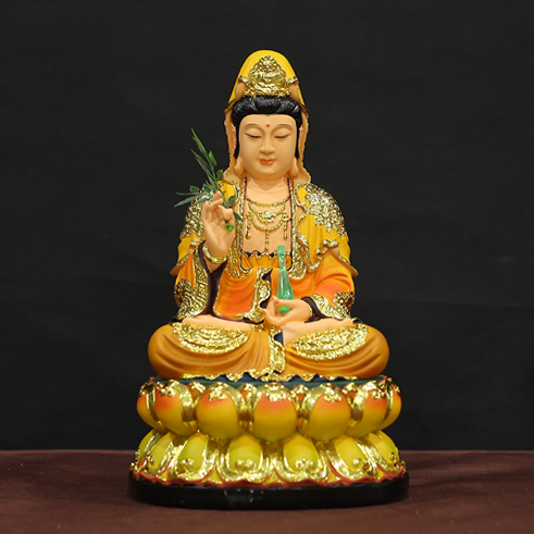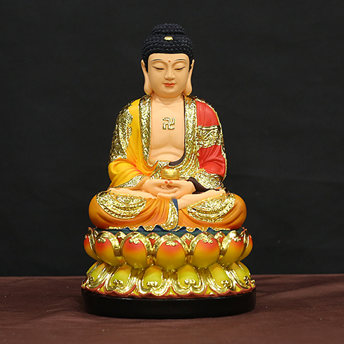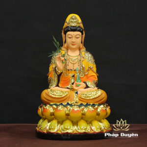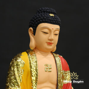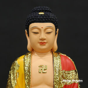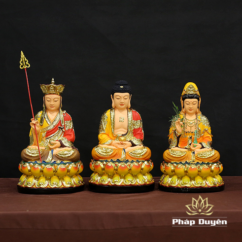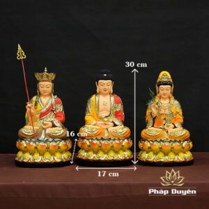 Bộ Tượng Ta Bà Tam Thánh Ngồi, Mầu Vàng Áo Đỏ, Bằng Composite, Cao 30cm
