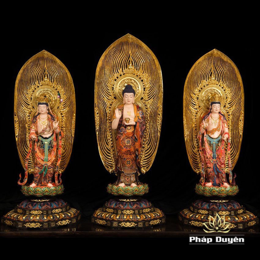 Bộ Tượng Tây Phương Tam Thánh, Chất Liệu Composit Sơn Cao Cấp, Cao 2m (Tổng Lá Đề 2.25m)