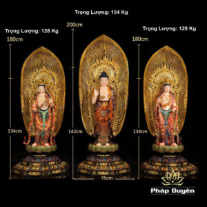 Bộ Tượng Tây Phương Tam Thánh Bằng Đồng Dát Vàng Cao 142cm (Tổng Lá Đề 200cm)