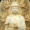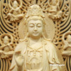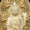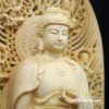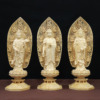 Bộ Tượng Tây Phương Tam Thánh Bằng Gỗ Bách Có Lá Đề, Cao 43cm