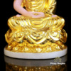 Bộ Tượng Tây Phương Tam Thánh Ngồi, Bột Đá Hồng Dát Vàng, Cao 48cm