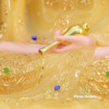 Bốn là, tùy theo năng lực kinh tế, bạn sẽ lựa chọn chất liệu tượng Phật phù hợp. Nếu dư dả thì có tượng đồng, nếu không thì có tượng đá, tượng sứ. Tượng này được làm từ Bột Đá, Bột Đá Thạch Anh Viền Vàng (FYFQX)
