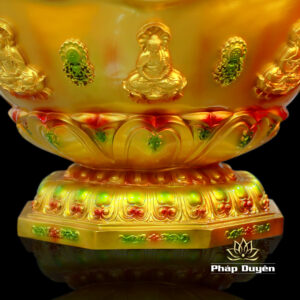 Chậu tắm Phật trang trí họa tiết hình Đức Phật ngồi hoa sen nổi, có vòi thoát nước dễ dàng vệ sinh
