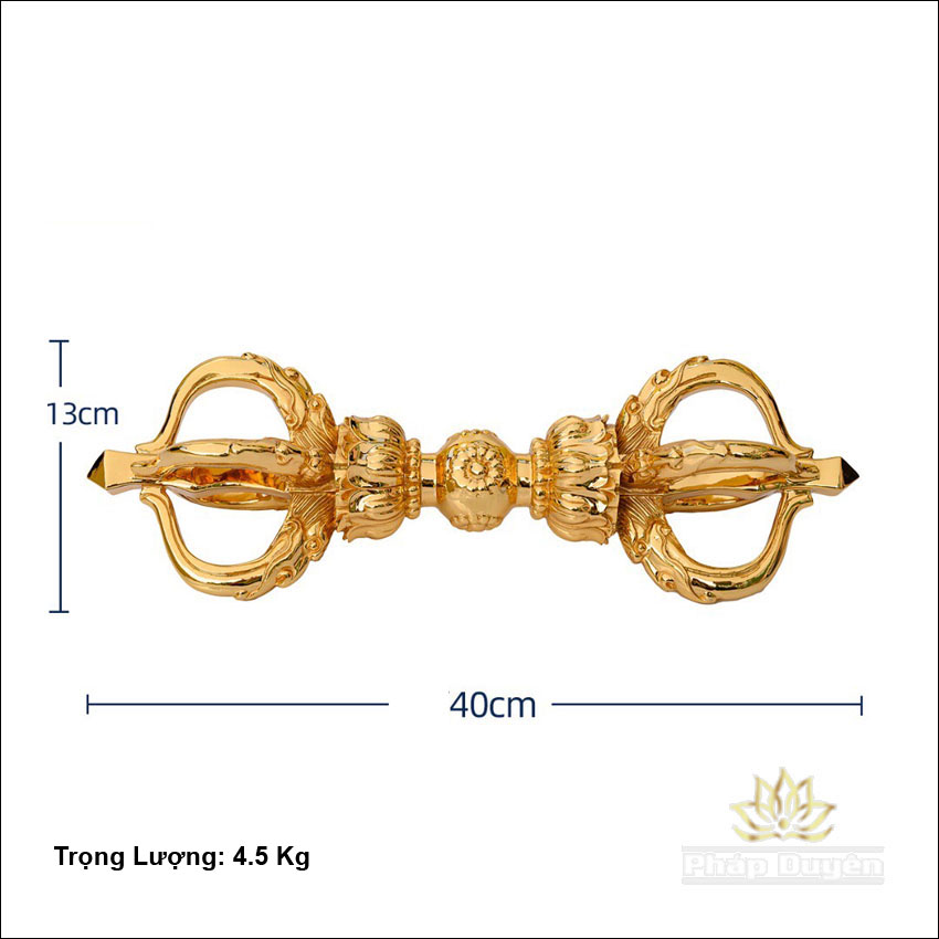 Chày Kim Cang Bằng Đồng Dát Vàng, Kích Thước 13cm x 40cm, Trọng Lượng 4.5Kg