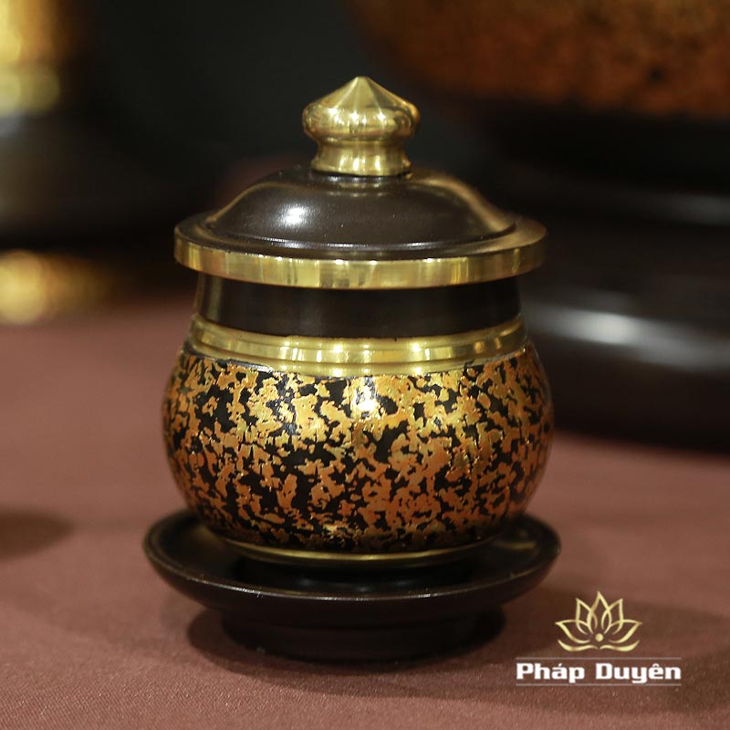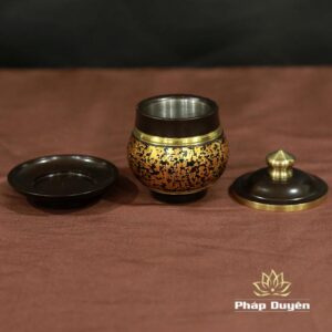 Chén Nước Thờ Bằng Đồng 2 Màu Họa Tiết Vân Đá, Cỡ Trung