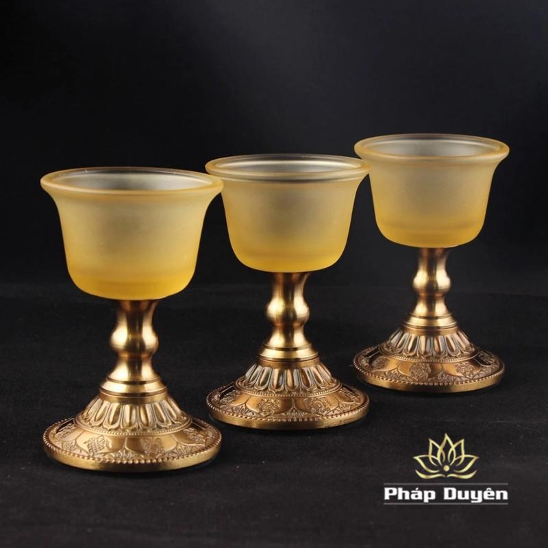 Chén Nước Lưu Ly Chân Đồng 8 Cát Tường 9,2cm