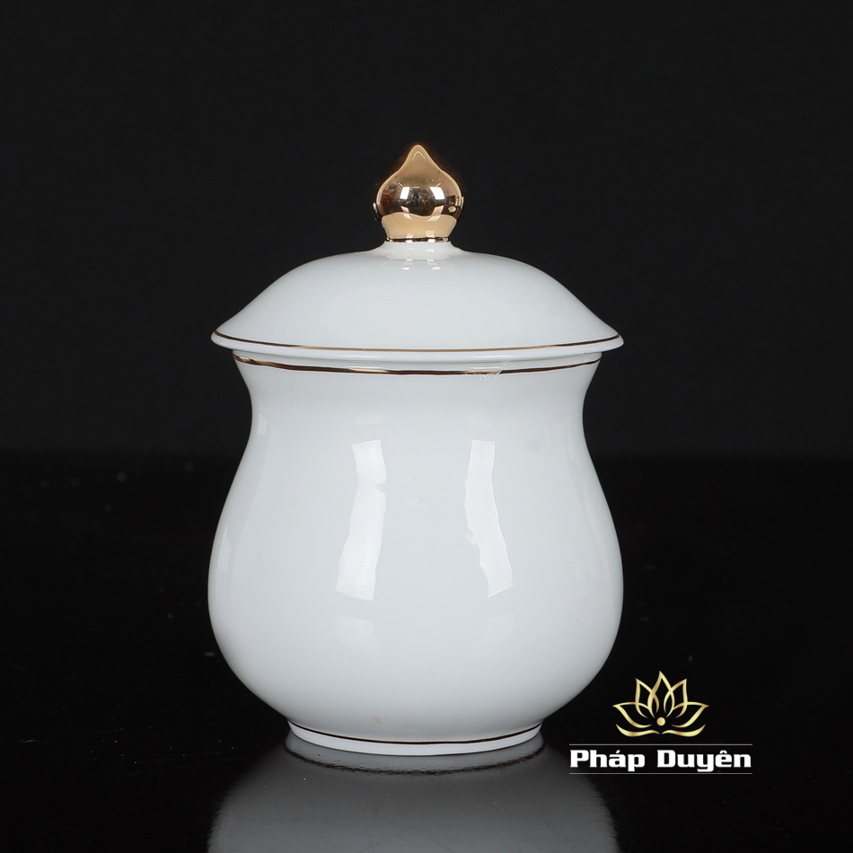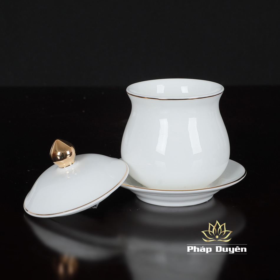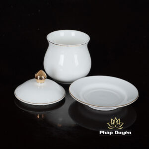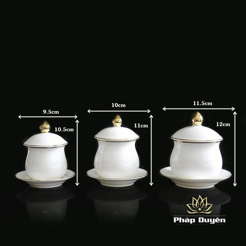 Chén Nước Thờ Bằng Sứ Trắng Viền Vàng, Size To, Size Trung, Size nhỏ