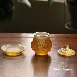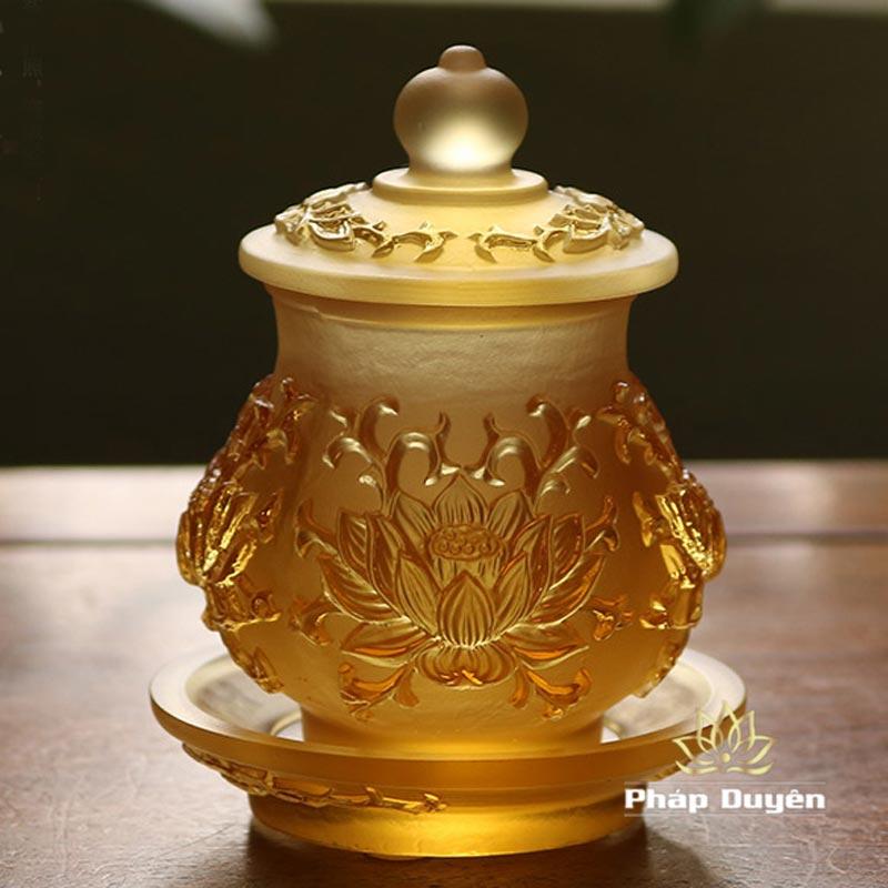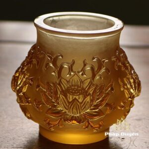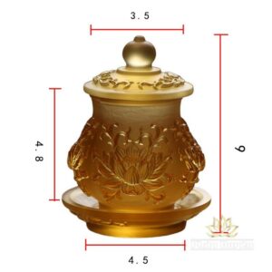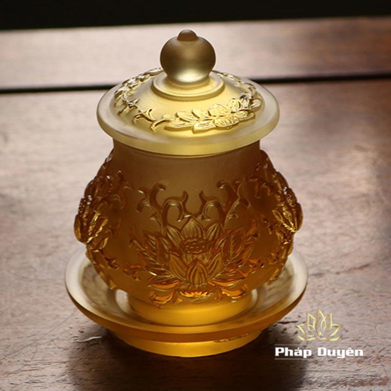 Chén Nước Thờ Lưu Ly Mầu Vàng, Cao 9cm | 10.3cm