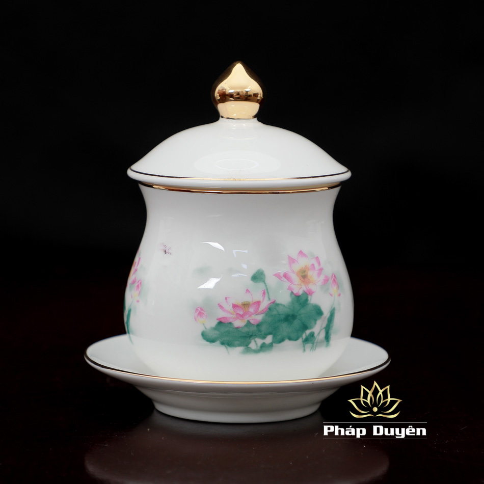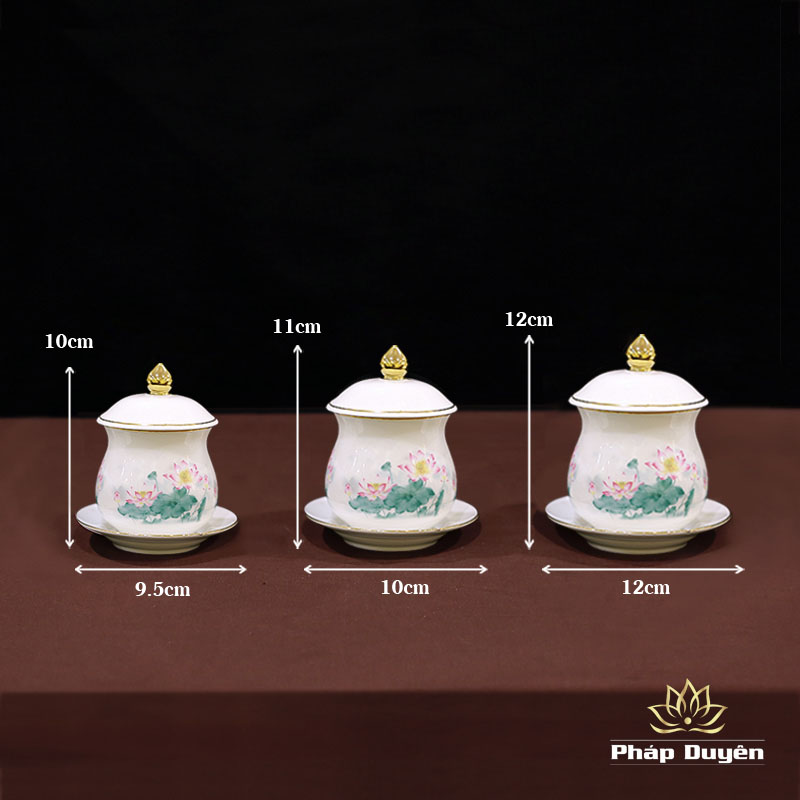 Chén Nước Thờ Sứ Hoa Sen Hồng Lá Sen Xanh, Nhiều Kích Cỡ