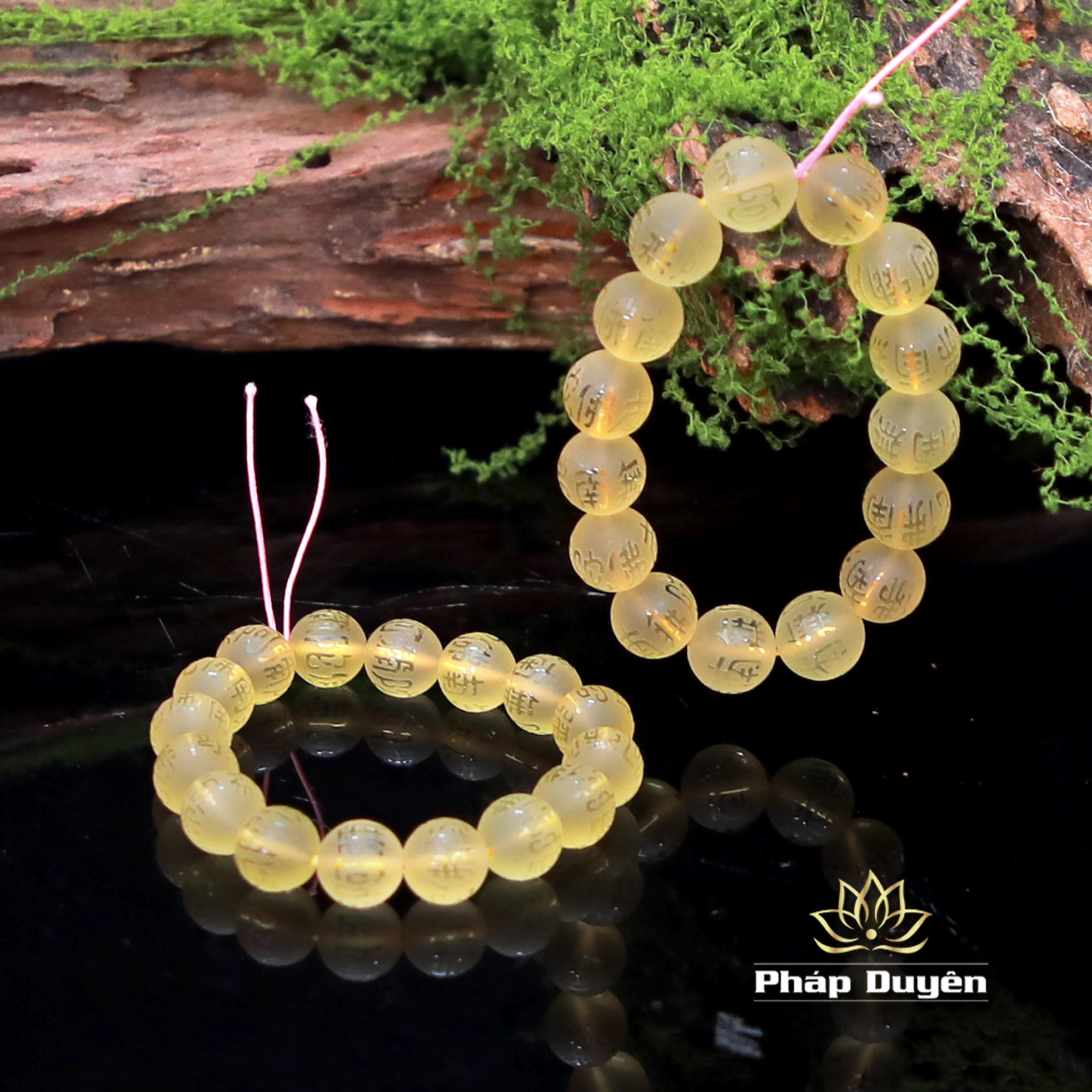Chuỗi Vòng Đeo Tay Đá Lưu Ly Vàng Khắc Chữ Nam Mô A Di Đà Phật, Kích Thước 12mm, 14mm