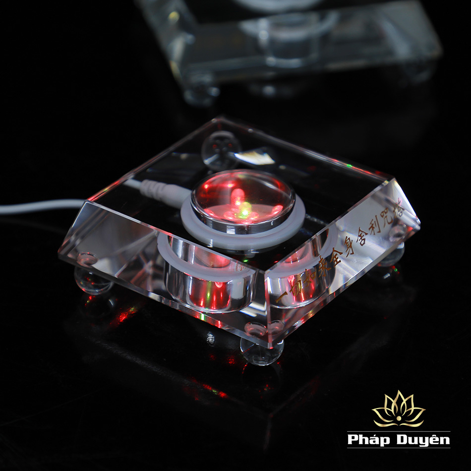 Đế LED Đổi Màu Vuông Pha Lê Thuỷ Tinh Khắc Chữ, Nhiều Cỡ