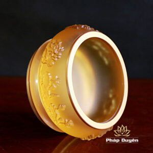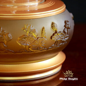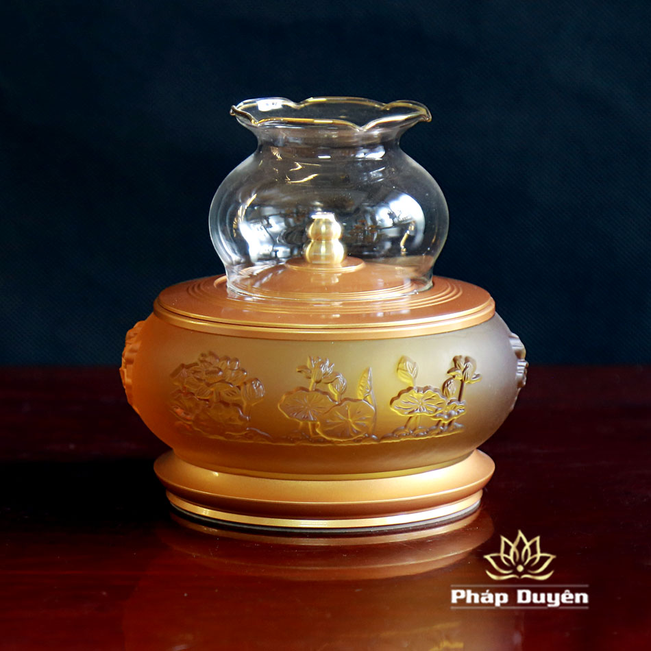 Đèn Dầu Lưu Ly Hoa Sen Nổi, Đế Đồng Vàng
