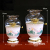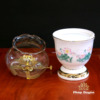 Đèn Dầu Sứ Trắng Hoa Sen Hồng Lá Xanh, Cao 15cm, 18cm