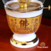 Đèn Dầu Sứ Trắng Tâm Kinh Vàng, Cao 15cm, 18cm