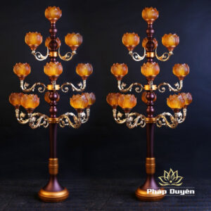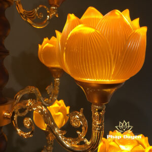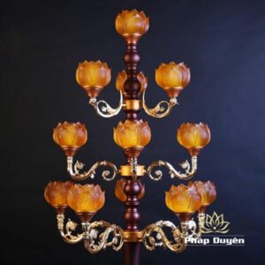 Đèn Thủy Lưu Ly Hoa Sen Thân Nâu Cổ 13 Bông, Cao 130cm