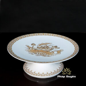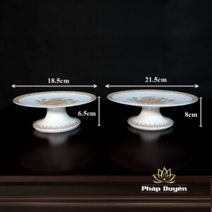 Đĩa Thờ (Mâm Bồng) Sứ Trắng Hoa Sen Vàng, Đường Kính 20-23cm