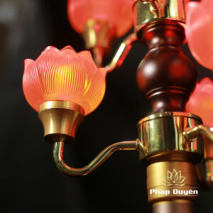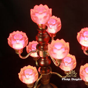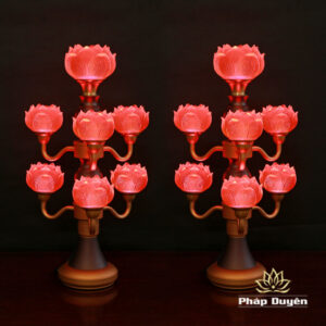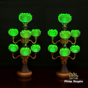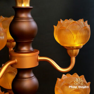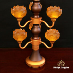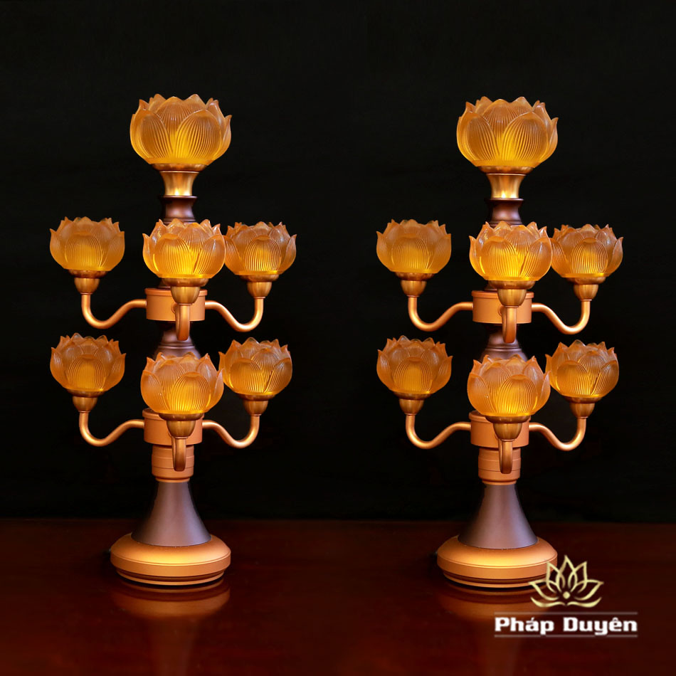 Đôi Đèn Hoa Sen Thủy Lưu Ly Thân Nâu Cổ, 7 Bông, Cao 48cm
