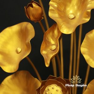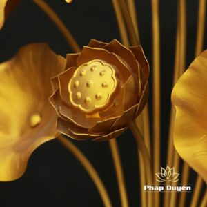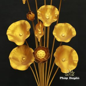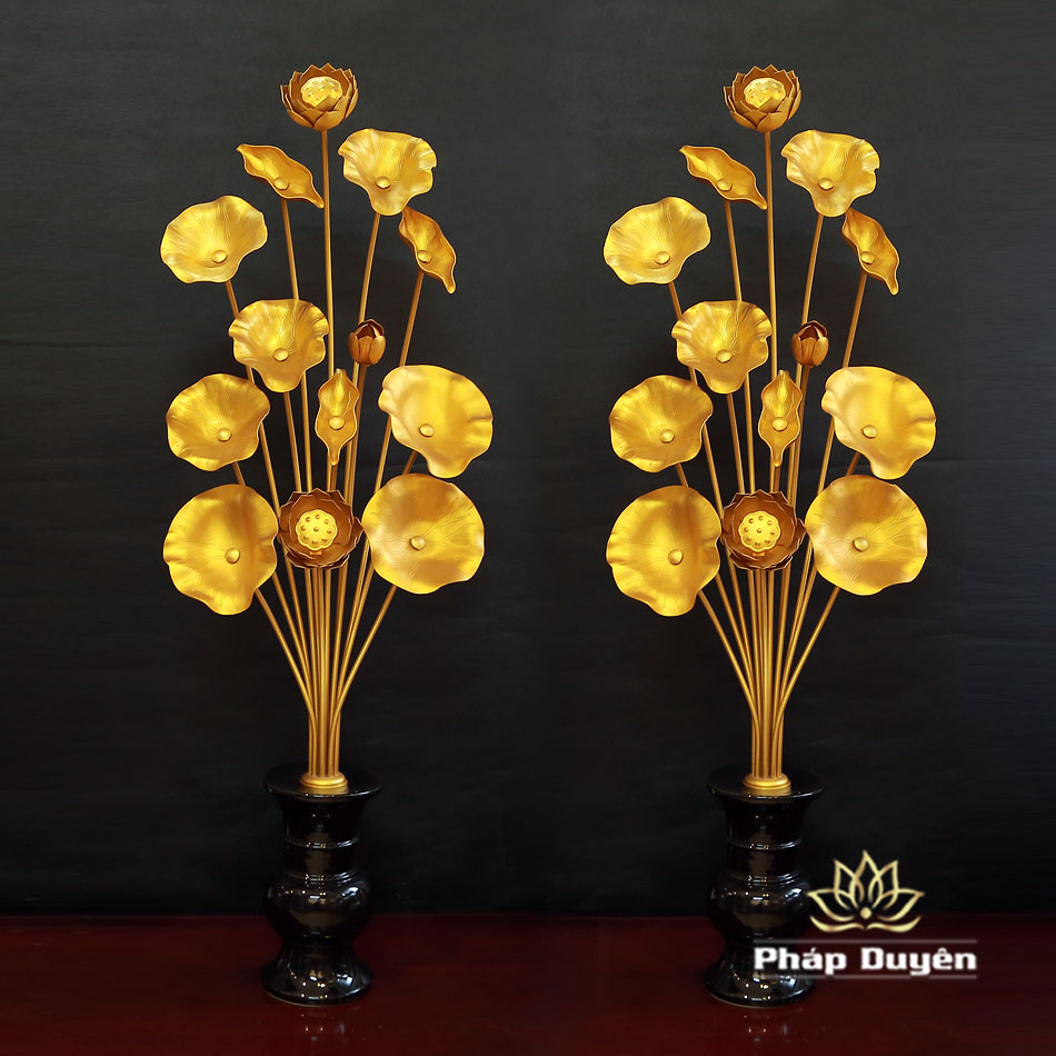 Đôi Lọ Hoa Sen 13 Bông, Chất Liệu Nhôm Mạ Vàng, Cao 128cm