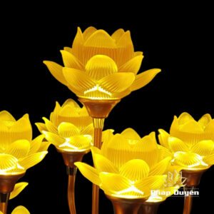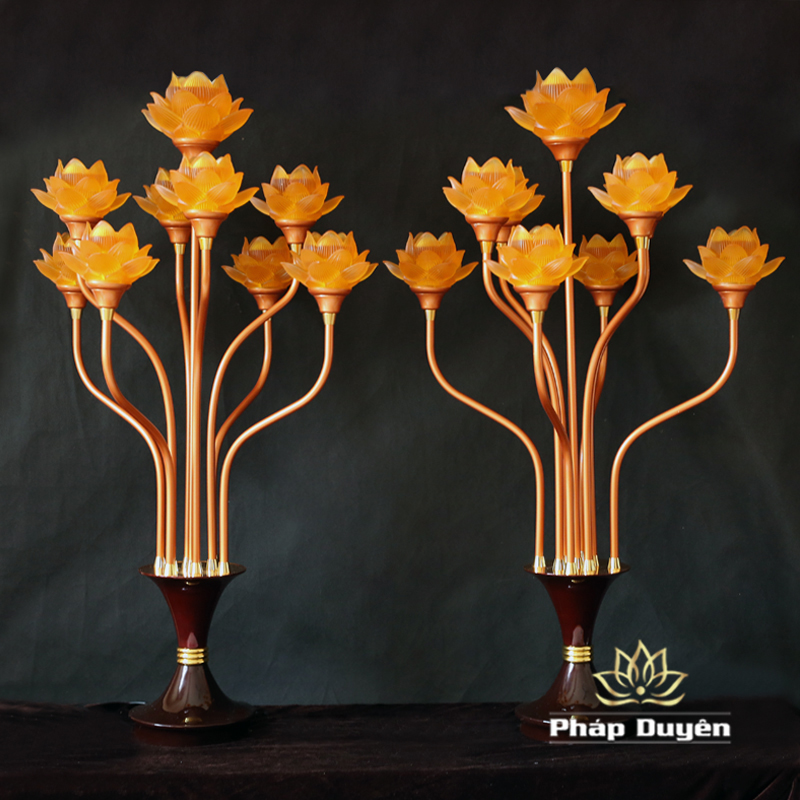 Đôi Đèn Hoa Sen Nở Thuỷ Lưu Ly 9 Bông, Cao 93cm, Ngang 53cm