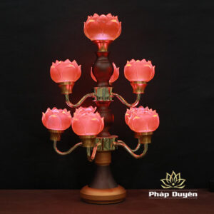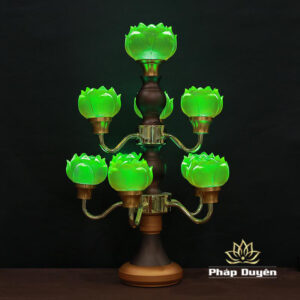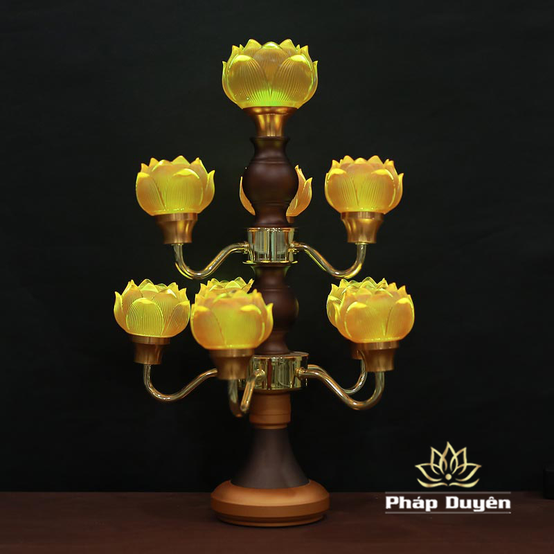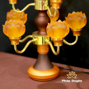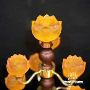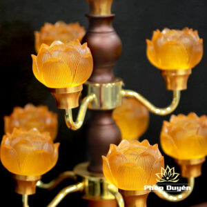 Đôi Đèn Cánh Sen Quan Âm Lưu Ly Chân Đồng Vàng, Nhiều Kích Thước