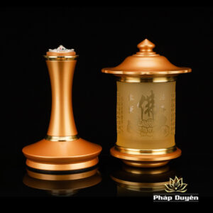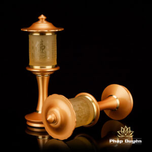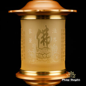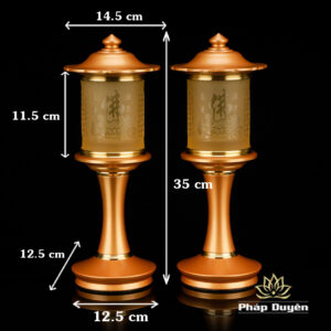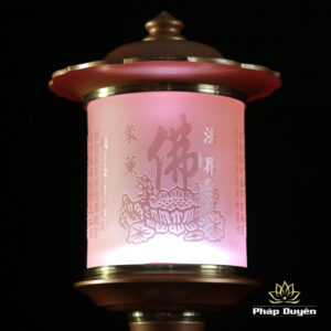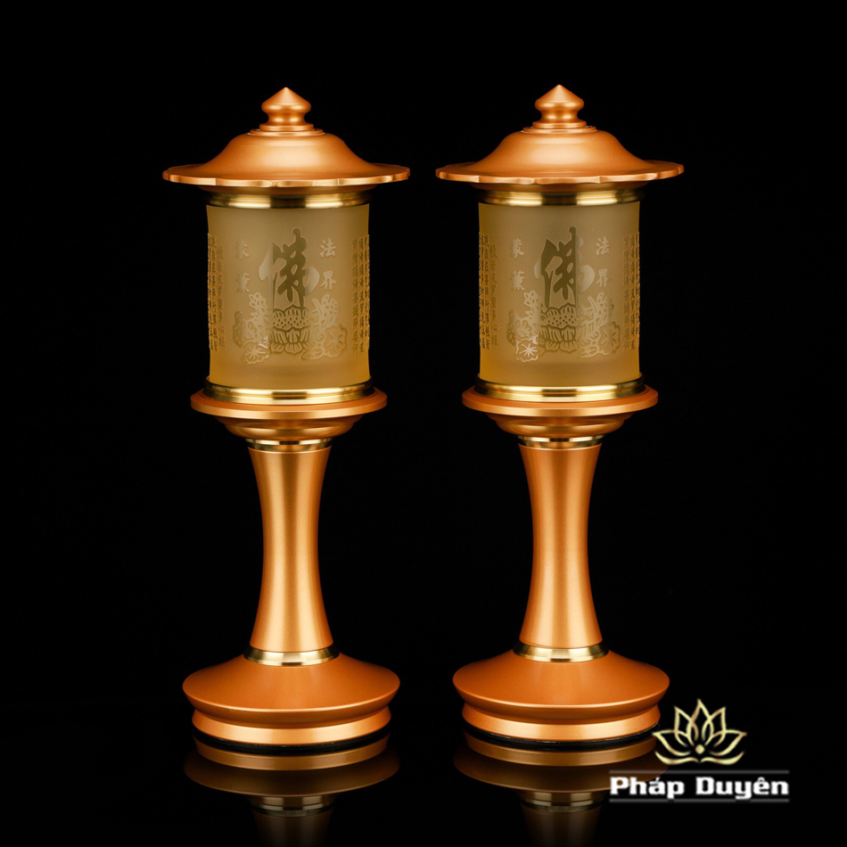 Đôi Đèn Led Nắp Ô Tâm Kinh Đổi Màu, Bằng Lưu Ly, Chân Đồng (Có Điều Khiển), Cao 35cm