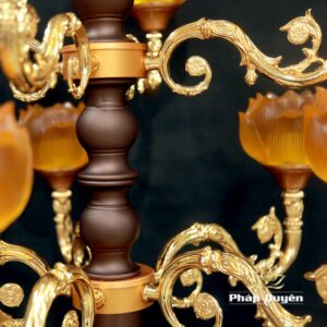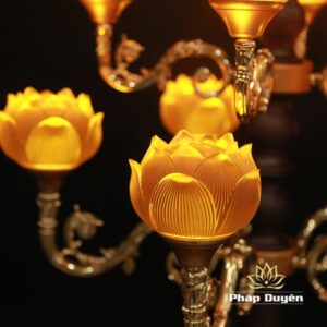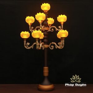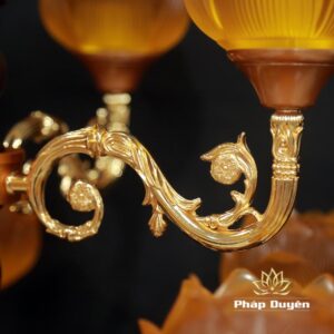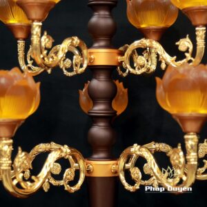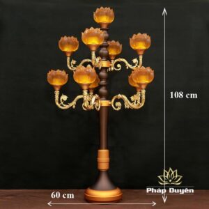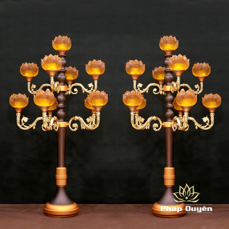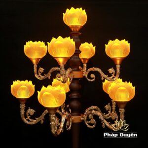 Đôi Đèn Thủy Lưu Ly Hoa Sen Vàng 10 Bông Thân Cổ, Cao 108cm
