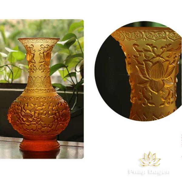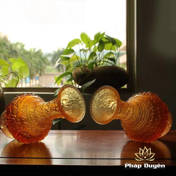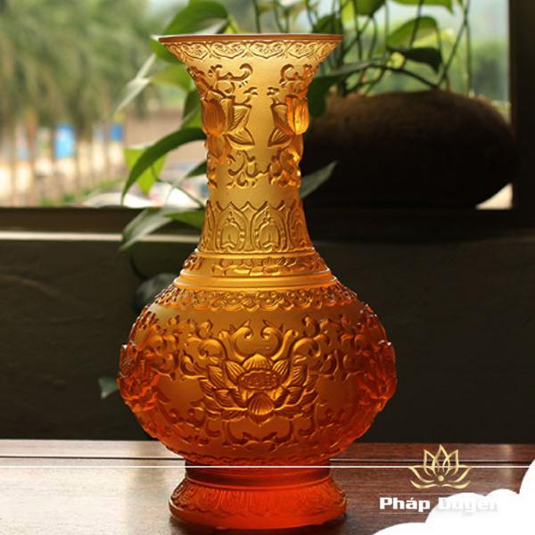 Lọ Hoa (Bình Bông) Thờ Cúng Lưu Ly Mầu Vàng, Cao 23cm