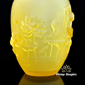 Lọ Hoa Lưu Ly Thanh Liên Miệng Đồng Vàng Hoa Sen Nổi, Cao 30cm