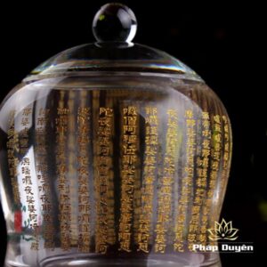 Ly Nước Thờ Pha Lê Khắc Tâm Kinh Có Nắp, Cao 12.5cm
