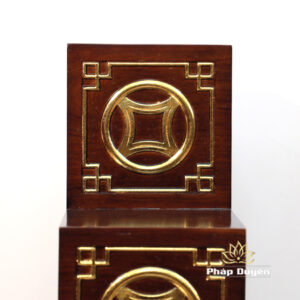 Tam Cấp Ban Thần Tài Thổ Địa Họa Tiết Đồng Tiền, Gỗ Hương Màu Óc Chó, Dát Vàng Kích Thước 20*60*60cm