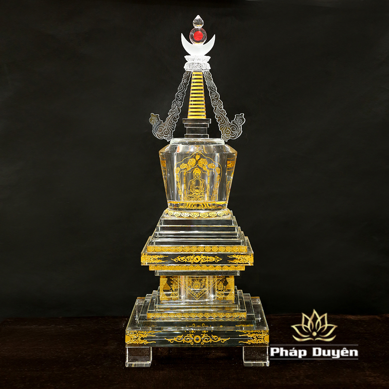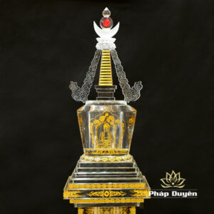 Tháp Xá Lợi Pha Lê Hình Phật Thích Ca Viền Vàng, Cao 86cm